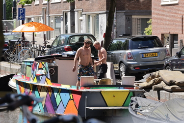 Manuel Broekman met zijn boot in de grachten van A
