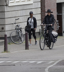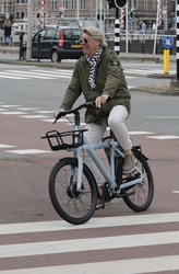 Ans Markus op de fiets in Amsterdam