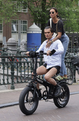 Robert Kranenborg op de fiets met vrienden in Amst